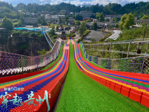 還有驚險刺激的彩虹滑道。坐上劃艇,一路飛馳而下,感受風(fēng)在耳邊,起伏的陡坡,一起來把心里擠壓的情緒都吶喊發(fā)泄出來吧!